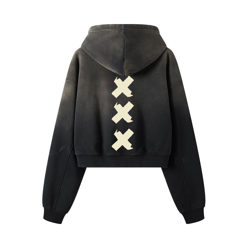 DAAD Women Cropped Hoodie Tape Logo Washed Black Brown
